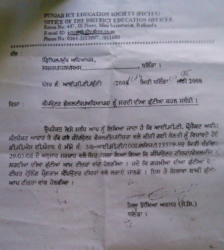 ਅੱਜ ਮਿਤੀ 07 ਮਾਰਚ 2025 ਨੂੰ ਕੰਪਿਊਟਰ ਫੈਕਲਟੀ ਐਸੋਸੀਏਸ਼ਨ(ਰਜਿ:) ਦੀ ਗਵਰਨਿੰਗ ਬਾਡੀ ਦੇ ਮੈਂਬਰਾਂ ਦੀ ਅਹਿਮ ਮੀਟਿੰਗ ਸ਼੍ਰੀ ਹਰੀਸ਼ ਕੁਮਾਰ ਐਡਵੋਕੇਟ ਨਾਲ ਹੋਈ। ਮੀਟਿੰਗ ਵਿੱਚ ਐਡਵੋਕੇਟ ਸਾਹਿਬ ਨੂੰ ਡੇ.ਏ. ਦੇ ਸਬੰਧ ਵਿੱਚ ਚੱਲ ਰਹੀ ਰਿੱਟ ਪਟੀਸ਼ਨ ਨੂੰ ਡਬਲ ਬੈਂਚ ਦੇ ਫੈਸਲੇ ਦੇ ਹਵਾਲੇ ਨਾਲ ਸੁਣਵਾਈ ਵਿੱਚ ਲਿਆਦਾ ਜਾਵੇ। ਅਤੇ ਜਲਦੀ ਹੀ ਕੋਰਟ ਨੂੰ ਇਸ ਕੇਸ ਵਿੱਚ ਜੱਜਮੈਂਟ ਕੰਪਿਊਟਰ ਅਧਿਆਪਕਾਂ ਦੇ ਹੱਕ ਕਰਣ ਲਈ ਬੇਨਤੀ ਕੀਤੀ ਜਾਵੇ।